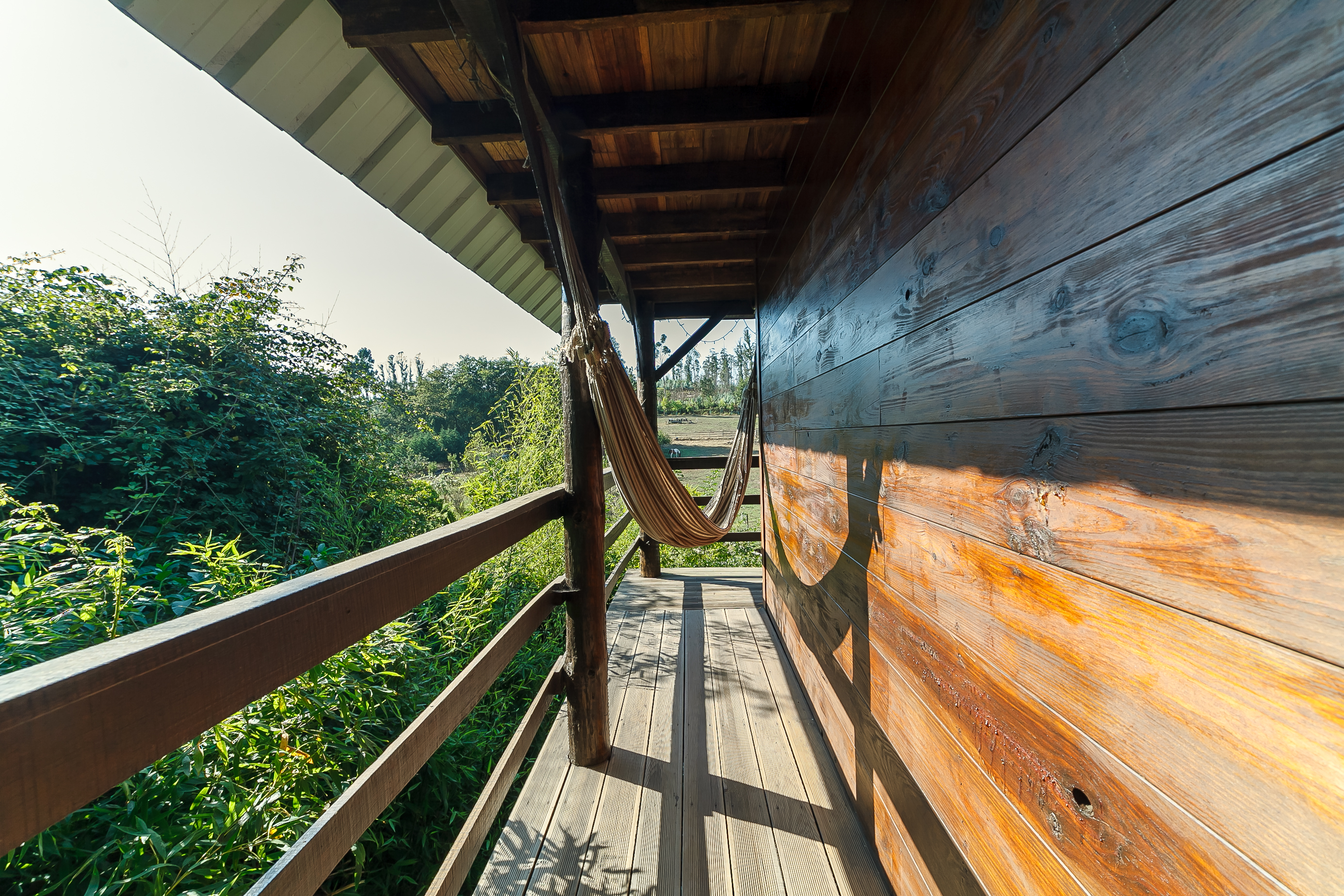 The balcony of Stilt Tree House offers spectacular views of the countryside, the lake and all the animals found there, creating a perfect environment for moments of peace and contemplation. On its patio you can relax on a swing, or choose to cool off in the shared pool, just a few meters away (from May to September). The house's elevated location offers a feeling of being in a nest, isolated from the outside world, allowing you to completely disconnect and enjoy the present moment.